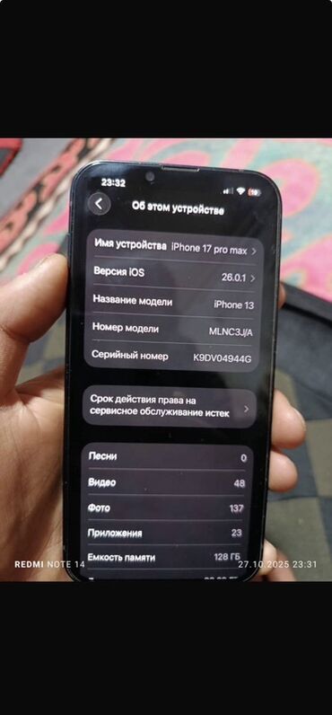 - iOS: 26.0.1 (указано в разделе «Об этом устройстве»).