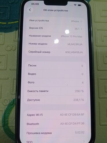 - Модель: iPhone 13 Pro Max (номер модели ML MG3RU/A — на фото экрана «Об этом устройстве»)