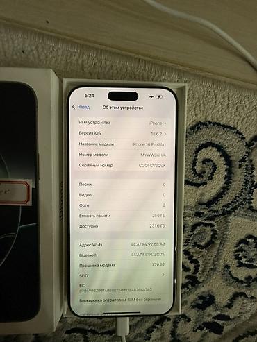 IPhone 16 Pro Max, Б/у, 256 ГБ, Коробка, 100 %