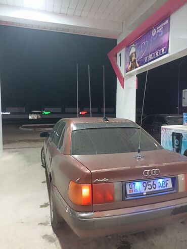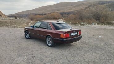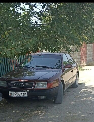 Audi 100 C4, седан, темно‑бордовый цвет, киргизские номера 07 (956 ABF). Классический дизайн 90‑х, полноценный 5‑местный салон, просторный багажник.