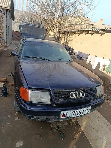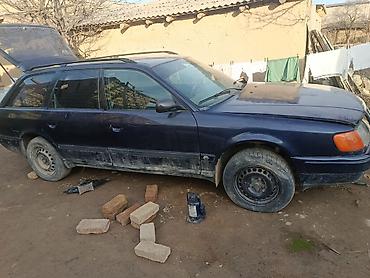 Audi 100 C4 универсал, темно-синий цвет. Просторный пятиместный салон и большой багажник с открывающейся вверх дверью. Кузов универсал с рейлингами на крыше. Передняя оптика прямоугольная, оранжевые поворотники, фирменная решетка с четырьмя кольцами. Стальные штампованные диски, зимняя резина спереди. Передний бампер с интегрированной решеткой-воздухозаборником, номерные знаки формата KG.