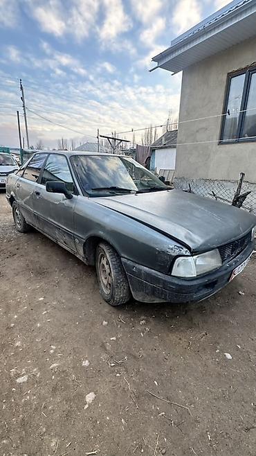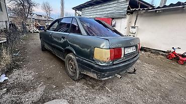 Audi 80, седан, серый цвет. Классическая «восьмидесятка» с передним приводом. Кузов 4-дверный, стекла тонированные заднего полукруга, установлен фаркоп. Передняя оптика прямоугольная, решетка с фирменными кольцами, бампера пластиковые. Салон на 5 мест, багажник вместительный. Задние фонари раздельные, крышка багажника с эмблемой и шильдиком модели. Колеса на штампованных дисках. На кузове видны следы коррозии и сколов, один задний фонарь имеет трещины/скотч, капот подрегулировать по зазорам. Отличная база для восстановления/проекта или на запчасти этой популярной модели: двери, стекла, оптика, элементы салона, подвеска, фаркоп и другие узлы. Номерной знак на машине.