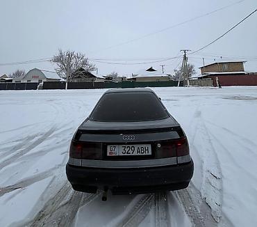 Audi 80 B4, седан, левый руль. Цвет — серебристый. Киргизская регистрация (номер на фото). Кузов: - 4 двери, буксирный крюк сзади - Полноразмерные бамперы темного цвета - Стальные диски с колпака...
