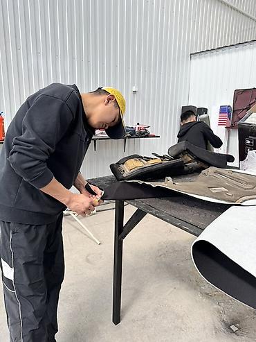 - Подбор и раскрой материалов (алькантара, экокожа, натуральная кожа, велюр, ткань)