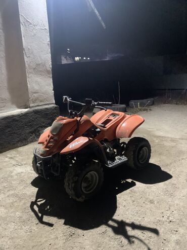 Детский/подростковый квадроцикл, компактный и легкий, оранжевого цвета.