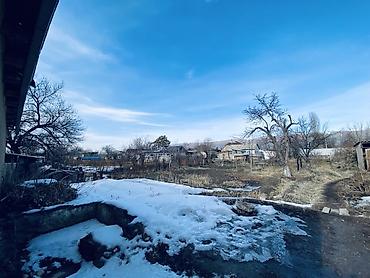 - Просторный двор с заездом для автомобиля, свободное место под сад, огород или дополнительную постройку. Видно подготовленное бетонное основание/лента под будущую пристройку.