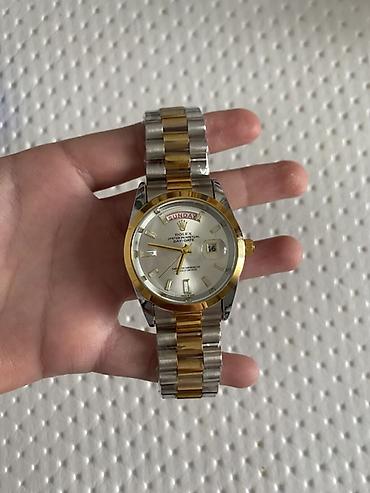 - Функции: отображение дня недели (окно в верхней части циферблата), дата с увеличительным окошком