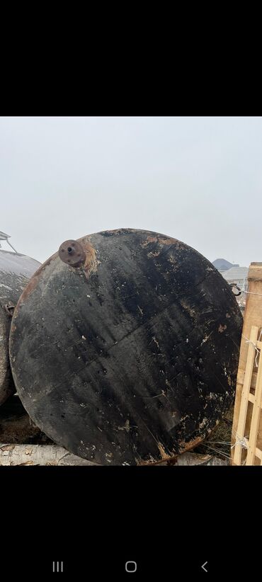 Горизонтальная металлическая емкость-цистерна Описание: - Материал: сталь, толщина стенки визуально массивная - Форма: цилиндрическая, горизонтальная - Конструкция: цельносварной корпус с торцевым...