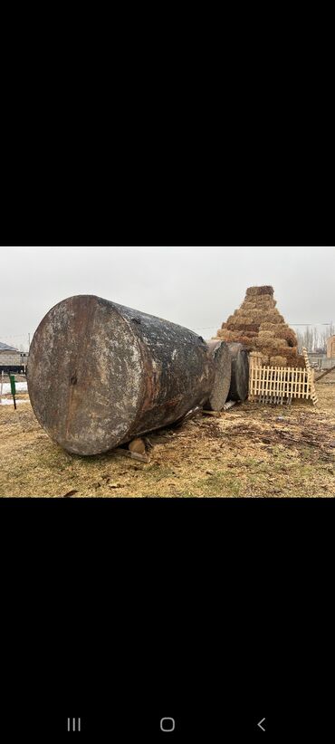 Стальная горизонтальная емкость/резервуар - Материал: металл (сталь). - Тип: цилиндрическая горизонтальная емкость с плоскими торцами. - Ориентировочный объем: крупный (подходит для хранения дизел...