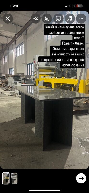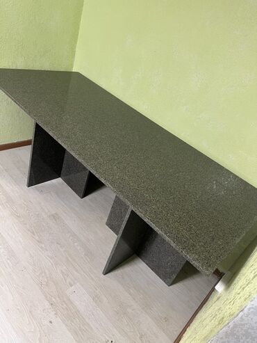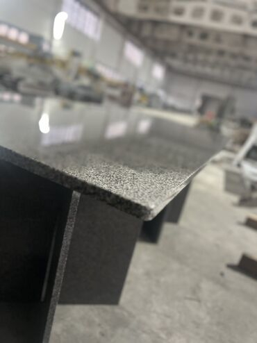 - Конструкция: массивная прямоугольная столешница на двух Х‑образных гранитных опорах. Опоры выполнены из плит, собираются в крест и обеспечивают устойчивость.