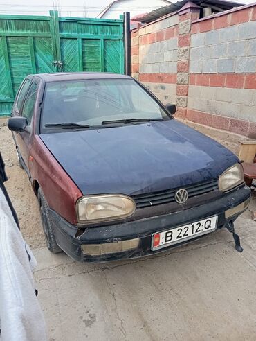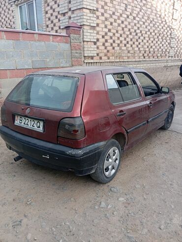 Volkswagen Golf III, 5‑дверный хэтчбек, бордовый цвет. Киргизские номера KG 06 862 AQI. Основные характеристики: - Кузов: компактный хэтчбек, 5 дверей, тонировка задней полусферы - Колеса: стальн...