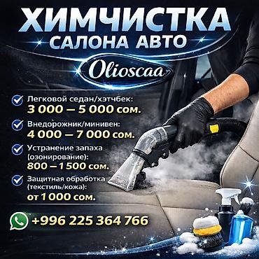 Химчистка -- полировка химчистка салона авто с разбором и без Седан-универсал от -4000сом. Кроссовер от - 6500сом. Минивэн от - 8000 сом Срок работы от 3х дней. Адрес мкр тунгуч (2gis анкара...