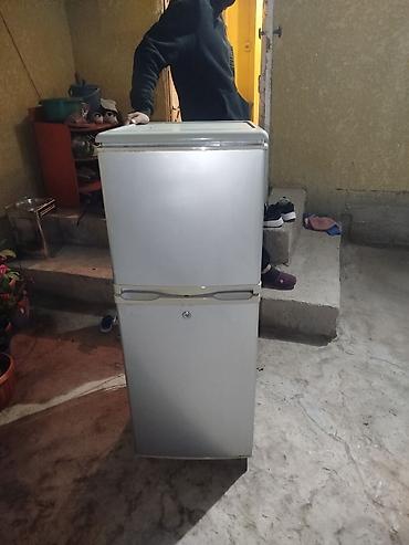 Холодильник двухкамерный, серебристый, с верхней морозильной камерой и