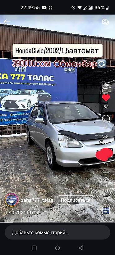 Honda Civic: 2002 г., 1.5 л, Автомат, Бензин, Седан