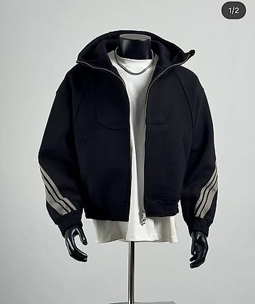 Черная утепленная куртка-бомбер Размер L - Лаконичный дизайн