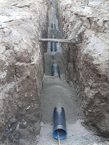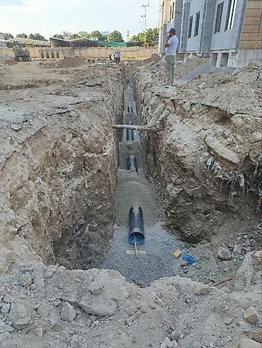 - Наружные сети: прокладка траншей, укладка и засыпка трубопроводов (ПНД/сталь/гофротруба), песчано-щебёночные основания, узлы ввода, камера подключения, футляры и проходы в фундаментах.