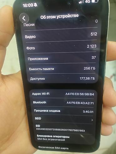 - Память: 256 ГБ, доступно ~177 ГБ.