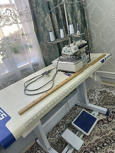 - Промышленный оверлок JASS (многониточный) на отдельном столе с нитеводителем на 4 катушки.