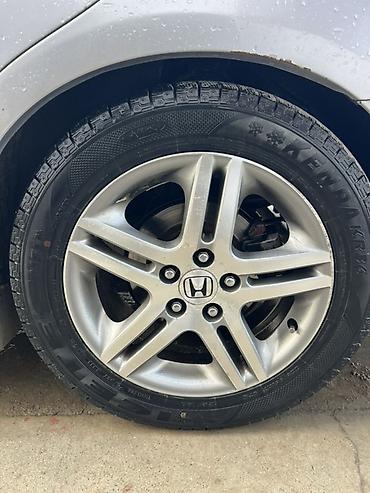 - Диски: фирменные Honda, 5-спицевые, серебристые, под 5 болтов, центральные колпачки с логотипом H.