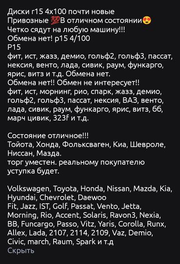 Продаю диски 4 тыщ за 1 шт всего есть 2 штуки размер r16 ( 5/114.3) состояние хорошее