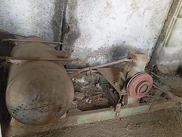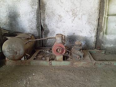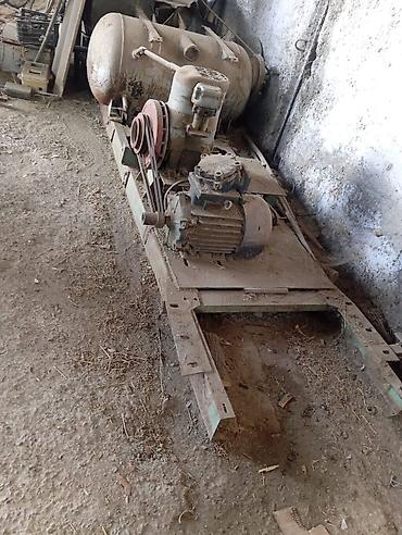 - Стационарный комплект на металлическом основании: электродвигатель, ременная передача, компрессорная голова и горизонтальный ресивер.