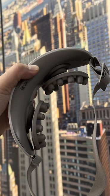 В комплекте на фото: массажная маска, чехол, документация. Цвет — серый.