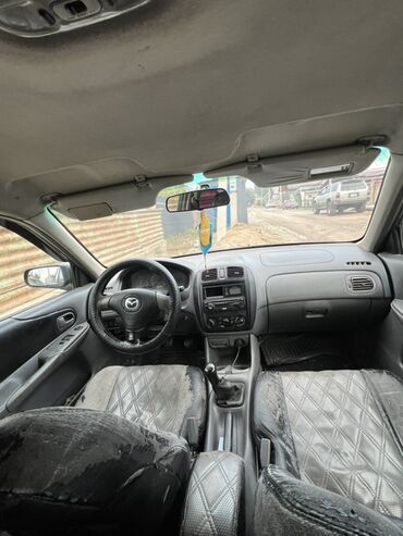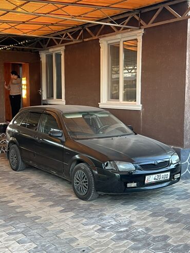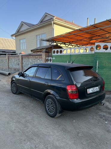 Mazda 323F (BA) универсал, черный цвет кузова. Практичный пятидверный кузов с большой пятой дверью и вместительным багажником; спинка второго ряда складывается раздельно, что позволяет увеличить полезный объем для перевозки крупногабаритных вещей.