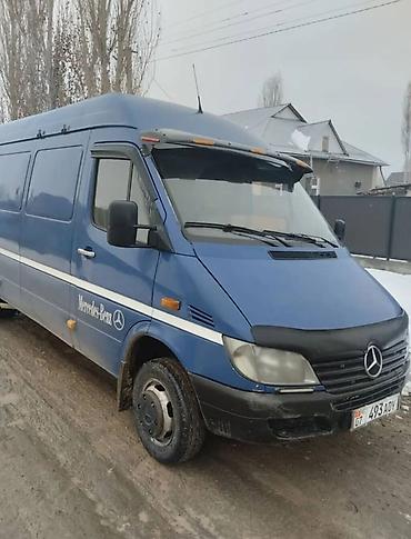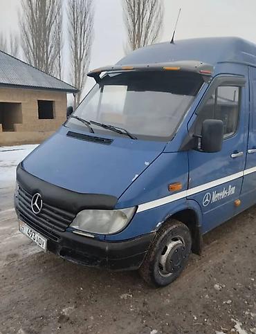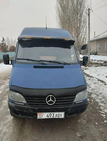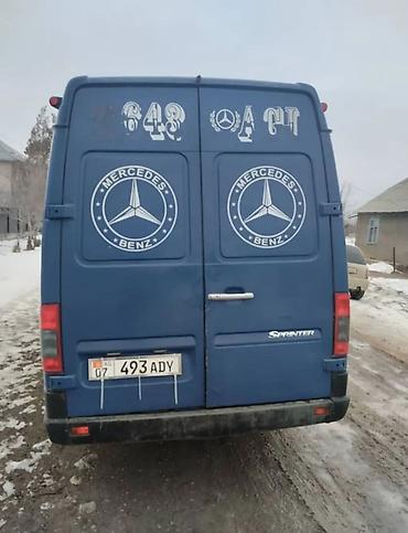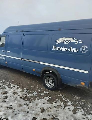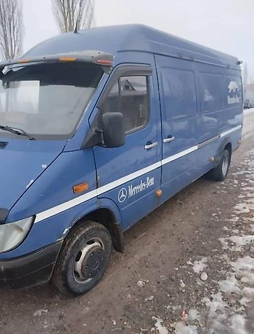 Продаю или меняю на Тойоту estima минивэн Mercedes-Benz Sprinter, длинная база, высокий крыша. Синий цвет, двухстворчатые задние двери, сдвижная боковая. Легковые номера KG (07). Передний спойлер/козырёк с повторителями, мухобойка на капоте, заводская оптика, зеркала увеличенного размера. Логотипы Mercedes-Benz по бортам и на задних дверях, шильдик Sprinter. Стальные колёса с колпаками, боковые повторители поворота, защитные молдинги по периметру кузова.