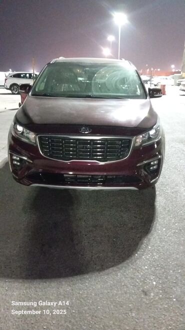 Kia Sedona EX — просторный 8‑/7‑местный минивэн в бордовом цвете.