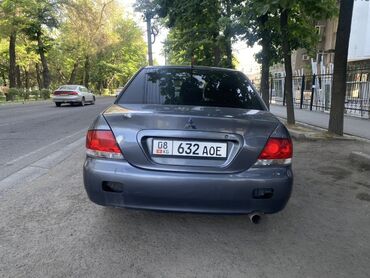 Mitsubishi Lancer, седан, темно‑серый цвет. Киргизская регистрация (номер 632 AOE, регион 08 KG). Кузов 4‑дверный, стекла тонированные. Передний и задний бамперы в цвет кузова, фары линзовые с прозрачными повторителями, задние фонари красно‑белые. Заводские штампованные 14" стальные диски, шины всесезонные. Зеркала и ручки дверей в цвет кузова. Антенна на крыше сзади, один выхлопной патрубок справа. Интерьер с тканевыми сиденьями, многофункциональная центральная консоль, кондиционер/печка, электростеклоподъемники передних и задних дверей. Центральный замок, иммобилайзер, подушки безопасности водителя и пассажира, ABS. Просторный салон и багажник, складывающаяся спинка заднего ряда. Отличный городской седан с экономичным бензиновым мотором и механической трансмиссией (по компоновке рычага и педалей). Подойдет для ежедневных поездок и такси.