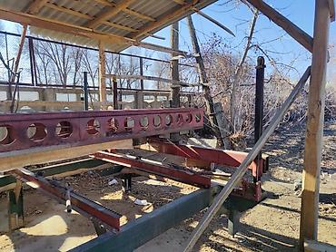 Ленточная пилорама на направляющих рельсах - Назначение: распиловка брёвен на доску, брус, лафет прямо на месте заготовки. - Конструкция: портал с ленточной пилой на стальной раме, длинные секцион...