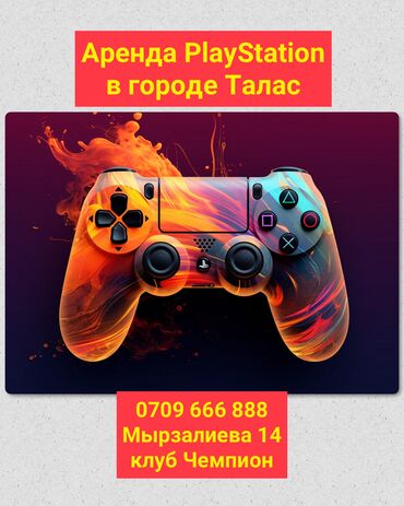 Прокат Плейстейшн в городе Талас 800 сом за 24 часа нужно оставить паспорт и оплату.Все новые игры и обновленные патчи!