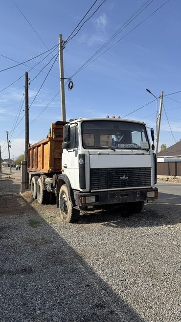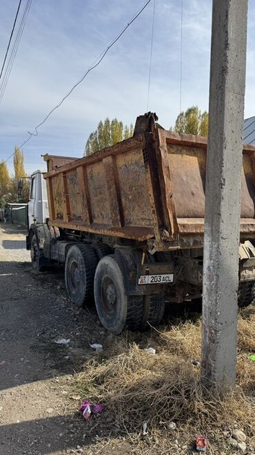 Самосвал с оранжевым кузовом, предназначенный для перевозки сыпучих материалов. Оснащен двойными задними колесами для улучшения устойчивости и грузоподъемности. Задние фонари и брызговики обеспечив...