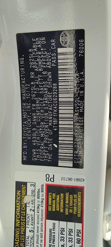 Toyota Camry: 2012 г., 2.5 л, Автомат, Бензин, Седан