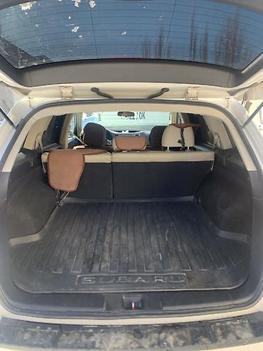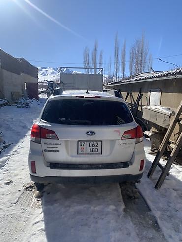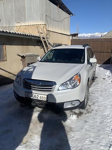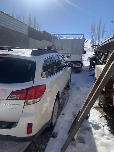 Значки/надписи на авто на фото: Outback 2.5i, Subaru AWD. Регистрационные номера — Кыргызстан (KG). Цвет — белый перламутр.