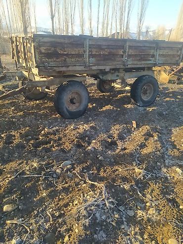 - Двухосный тракторный прицеп с откидными бортами, листовой кузов, пневматические колёса.