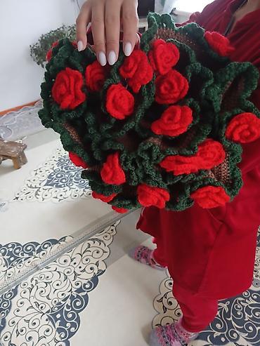 Вязаная композиция «Букет роз» - Объемный букет из ярко‑красных