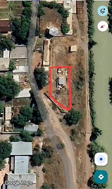- Локация: вдоль улицы (на плане — ул. Альбекова), рядом территория водозабора и хозяйственная постройка; участок граничит с дорогой и находится у канала/реки (видно на спутниковом снимке).