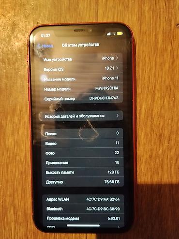 IPhone 11 срочно обмен тоже есть - Модель: iPhone 11, номер модели MWL92LL/A - Цвет: (PRODUCT)RED, стеклянная спинка, алюминиевые грани - Память: на фото указаны медиаданные (песни 0, видео 59, ф...