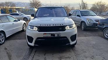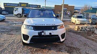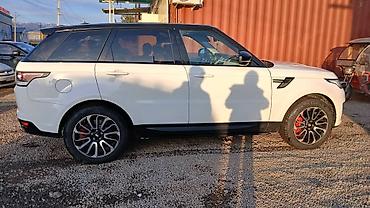 Range Rover Sport, белый кузов, агрессивный спортивный обвес и четыре выхлопные насадки. Светодиодная оптика с фирменными дневными ходовыми огнями, решетка и воздухозаборники в черном глянце. Легкосплавные диски большого диаметра с красными тормозными суппортами. Панорамное остекление, тонированные задние стекла, черные корпуса зеркал. Полный привод, высокий клиренс, спортивные бамперы и аэродинамические вставки. Задняя дверь с эмблемами Range Rover и Sport, парктроники по периметру. Интерьер с контрастной отделкой салона (видна коричнево-рыжая кожа), мультируль, современная мультимедийная система, климатическая установка, электрорегулировки. Отличный вариант для динамичной езды и статусных поездок.