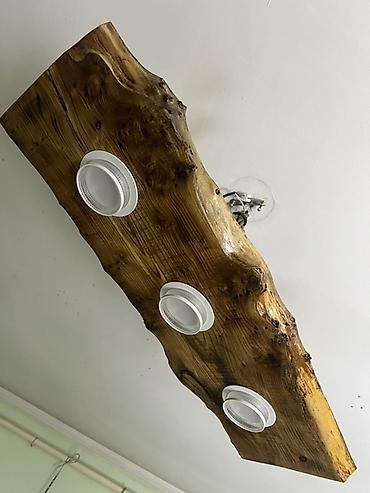Комплект: деревянная панель с тремя встроенными точечными светильниками и потолочным креплением (видно на фото).