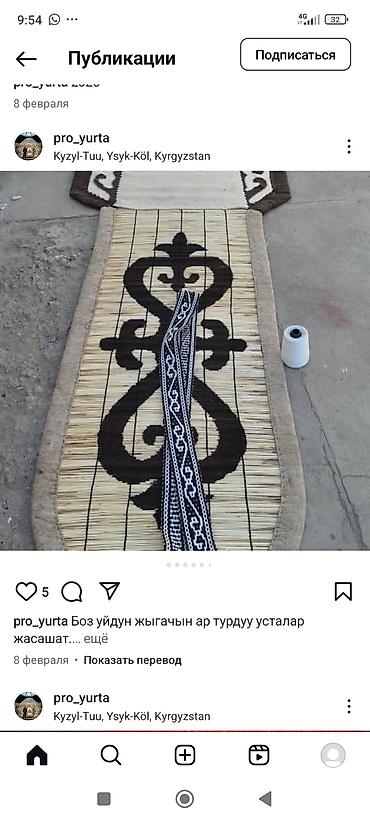 Боз уй, боз уй сатылат, буйрутма алабыз, ар кандай көлөмдө баардык түрүн жасап беребиз. 100% колго жасалган табигый жана сапаттуу. Боз үй боюнча байланышып, кенен маалымат алып, боз үйдүн видео, с...