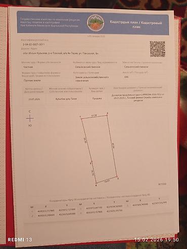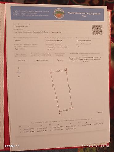 - Кадастровый план выдан Госагентством по земельным ресурсам КР (дата плана: 29.01.2026).