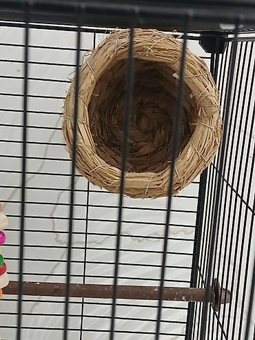 Просторная клетка для птиц, оснащенная всем необходимым для комфортного содержания пернатых питомцев. Внутри клетки имеются аксессуары, такие как подвесная лесенка с разноцветными бусинами, которая предлагает интерактивную площадку для игр и физической активности. Также предусмотрено гнездо из натуральных материалов, обеспечивающее уютное место для отдыха или размножения. Конструкция клетки позволяет легко поддерживать чистоту, а ее размеры подходят для содержания одного или нескольких небольших птиц. Идеальный вариант для домашнего использования, обеспечивающий безопасное и стимулирующее пространство для ваших питомцев.