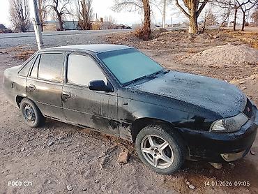 Chevrolet Nexia (Daewoo Nexia) седан, черный цвет, двигатель 1.6L (эмблема Nex A 1.6L на крышке багажника). Киргизские номера. Кузов: классический 4‑дверный седан, черный металлик, заводской аэрод...