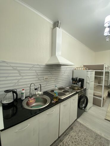- Полноценная кухонная зона с плитой (4 конфорки), духовым шкафом