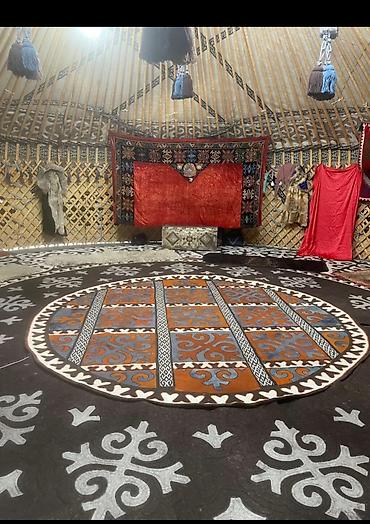 Юрта ручной работы с традиционным казахским/кыргызским оформлением Состав и особенности: - Каркас из древесины: решётчатые кереге, уыки и тоон с декоративными накладками. - Купольное отверстие (шо...