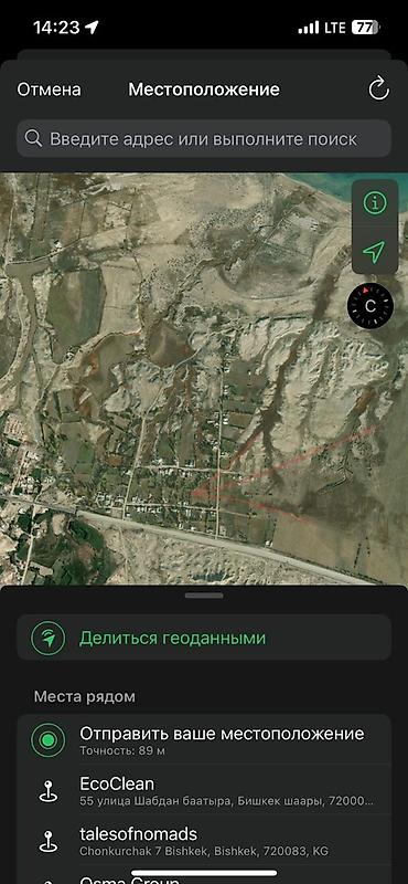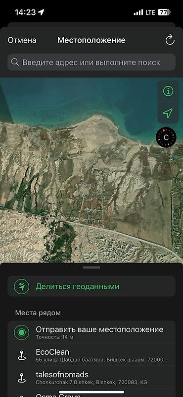 - Локация: северное побережье Иссык-Куля, посёлочная застройка вблизи берега (на скриншотах отмечен район квартальной сетки рядом с трассой и побережьем).
