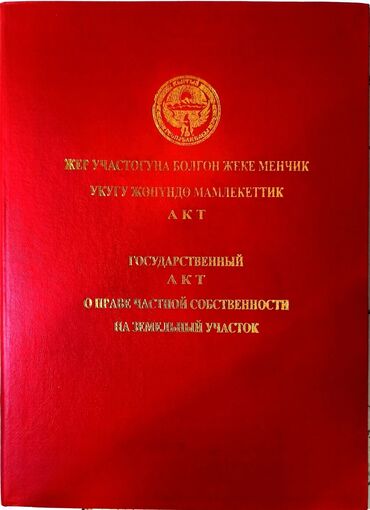 - Форма собственности: частная, подтверждена Государственным актом (красная обложка, киргизский/русский язык).