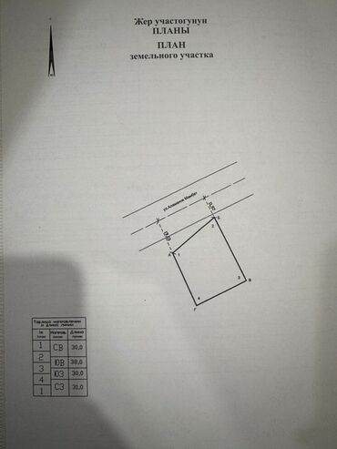 - Стороны по плану: 30 м (северо-восток), 38 м (юго-восток), 30 м (юго-запад), 31 м (северо-запад).